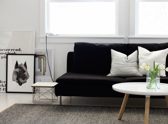 With Oscar night coming up soon - when we always have a lot of people over to watch the ceremony all night long - until 8 o'clock in the morning! - we decided that maybe we should admit defeat and try our luck with another IKEA sofa. My all time favourite blogger home is the home by Jennifer Hagler from A Merry Mishap and I immediately fell in love with the IKEA Söderhamn sofa that she has in her home. She owns the chaise longue and the sofa (as seen in photo 1+3+4). I was also considering buying the IKEA Karlstad sofa that so many lovely interiorbloggers own (Ale Besso, Ollie and Sebs Haus, That Nordic Feeling..), mainly because it was available in a lighter colour than the Söderhamn - and would thus make my home appear larger. My Instagram friend Tiene (make sure to follow this lovely lady here!) owns the IKEA Söderhamn sofa and was very helpful in helping me make a decision - as always! :) My boyfriend is very much a lounger, and I'm a person who works and studies sitting up, with my legs pulled up. The Söderhamn is a very deep sofa so it's perfect for the both of us - especially for the boyfriend, the one who has had to endure all the interior changes I've been making to our home in the past 3 years ;)